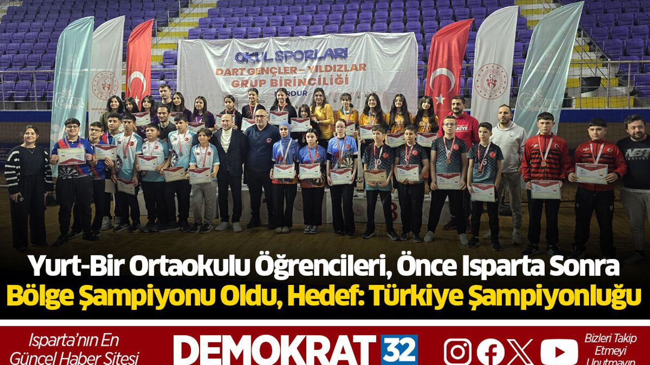 Isparta’da bu yıl eğitim hayatına başlayan Yurt-Bir Ortaokulu, sportif başarılarıyla kısa sürede adından söz ettirmeyi başardı. Okulun Yıldız Kız Dart Takımı, Burdur’da düzenlenen Bölge Grup Maçları’nda büyük bir başarıya imza atarak 16 farklı ilden gelen rakiplerini geride bıraktı ve şampiyon oldu.