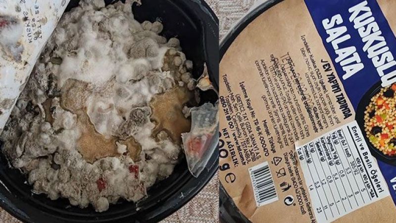 Muzaffer Türkeş Mahallesi’nde bulunan bir zincir marketten bugün satın alınan hazır kuskuslu salata, küfle kaplı çıktı.